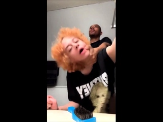 Sexy amateur redhead teen double dildo action