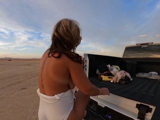 Blonde is flashing her big boobs in the outdoors