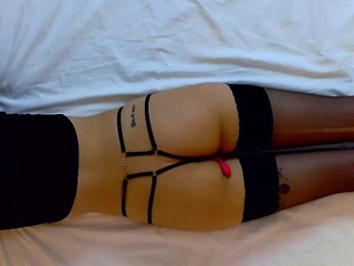 Sexy brunette wearing stockings masturbates webcam
