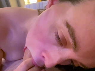 Big tit brunette sucks a big cock blowjob POV