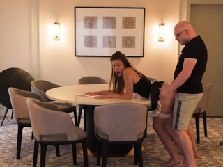 Schoolgirl brunette doggystyle and blowjob