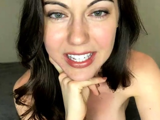 Busty curly brunette with big boobs fucks on couch