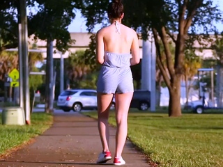Small tit brunette amateur tugs on a big willie